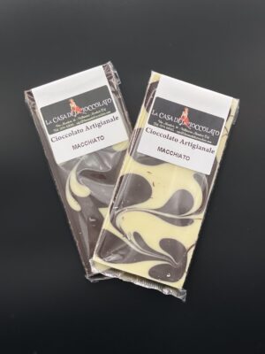 Cioccolato bianco dalla consistenza morbida e vellutata decorato con frammenti di liquirizia, regala attimi di dolce piacere.